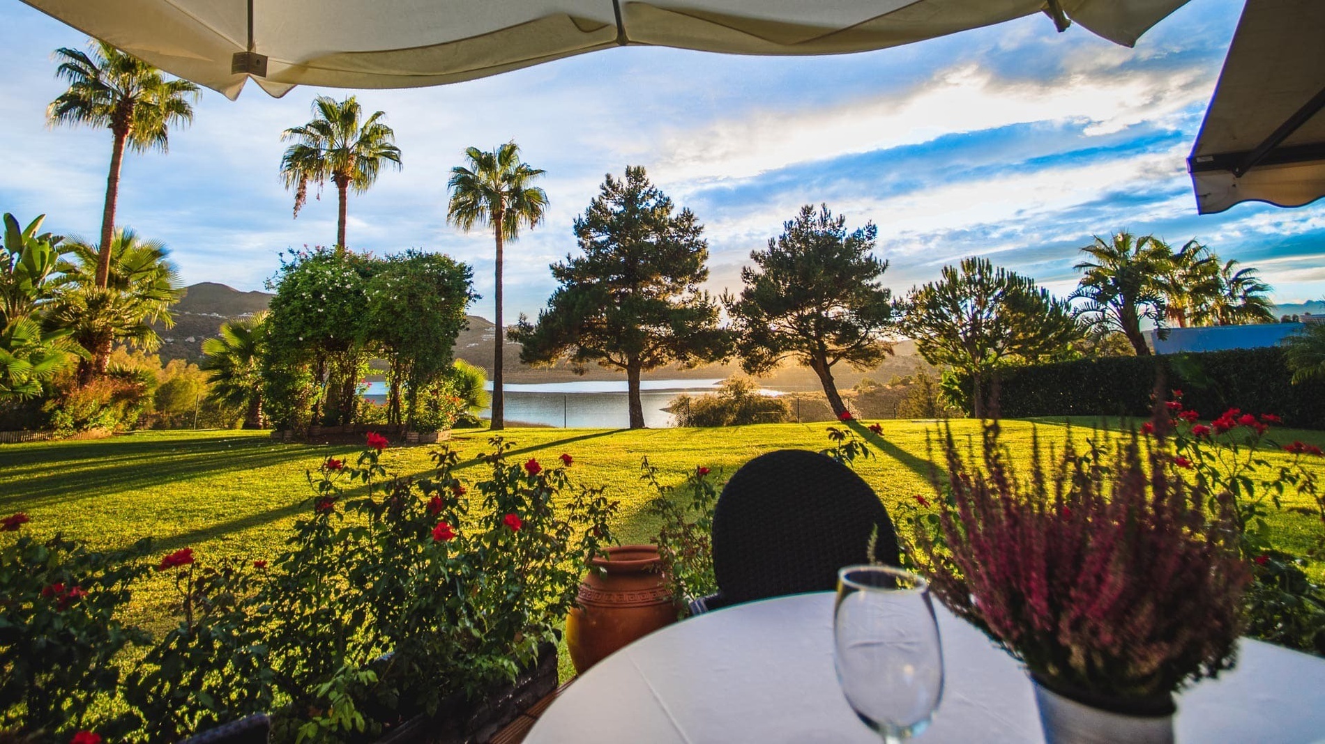 Throughout the year you can enjoy the terrace overlooking the hotel garden, thanks to the great climate we enjoy in Costa del Sol. The terrace, offering panoramic views of our well-kept gardens and La Viñuela reservoir, is the perfect meeting point for breakfast, lunch, and dinner outdoors in a charming environment, enjoying unbeatable views. Although subject to the weather, we will be able to enjoy this special setting practically all year round thanks to our location protected by Sierra Tejeda. And enjoy one of the most beautiful sunsets in Andalusia.